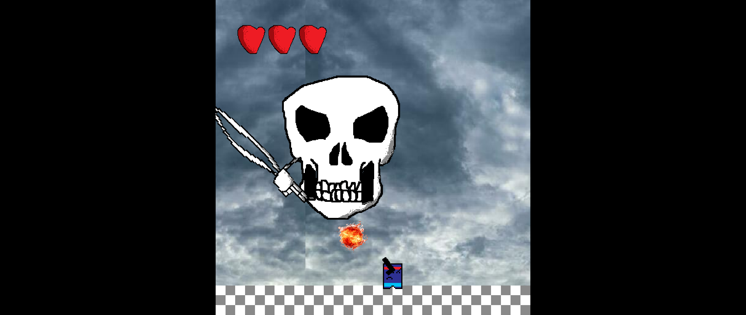 A kid went out but ended up going too far from home, and to make matters worse, he ran into a GIANT SKULL HEAD. A = left D = right space = jump shift = run mb1 = shot